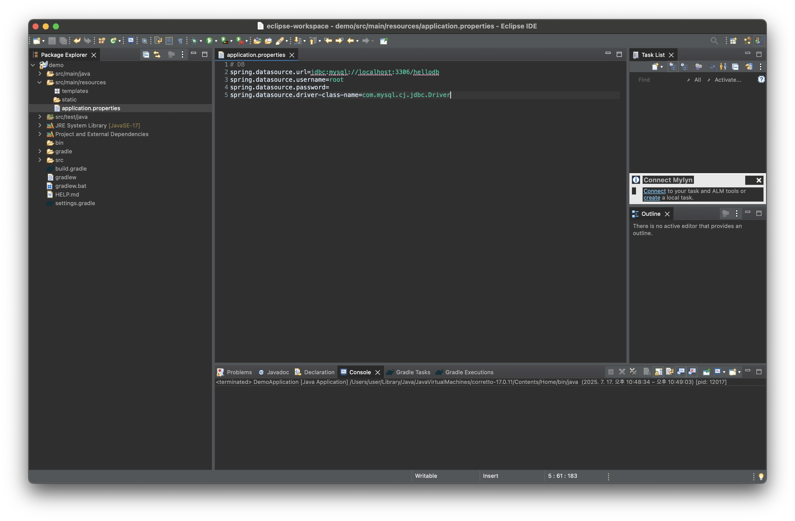 src/main/resources/application.properties 파일을 클릭 후