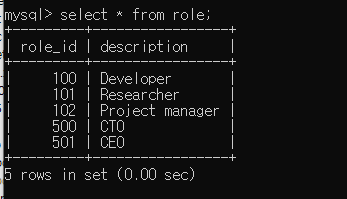 select * from role;